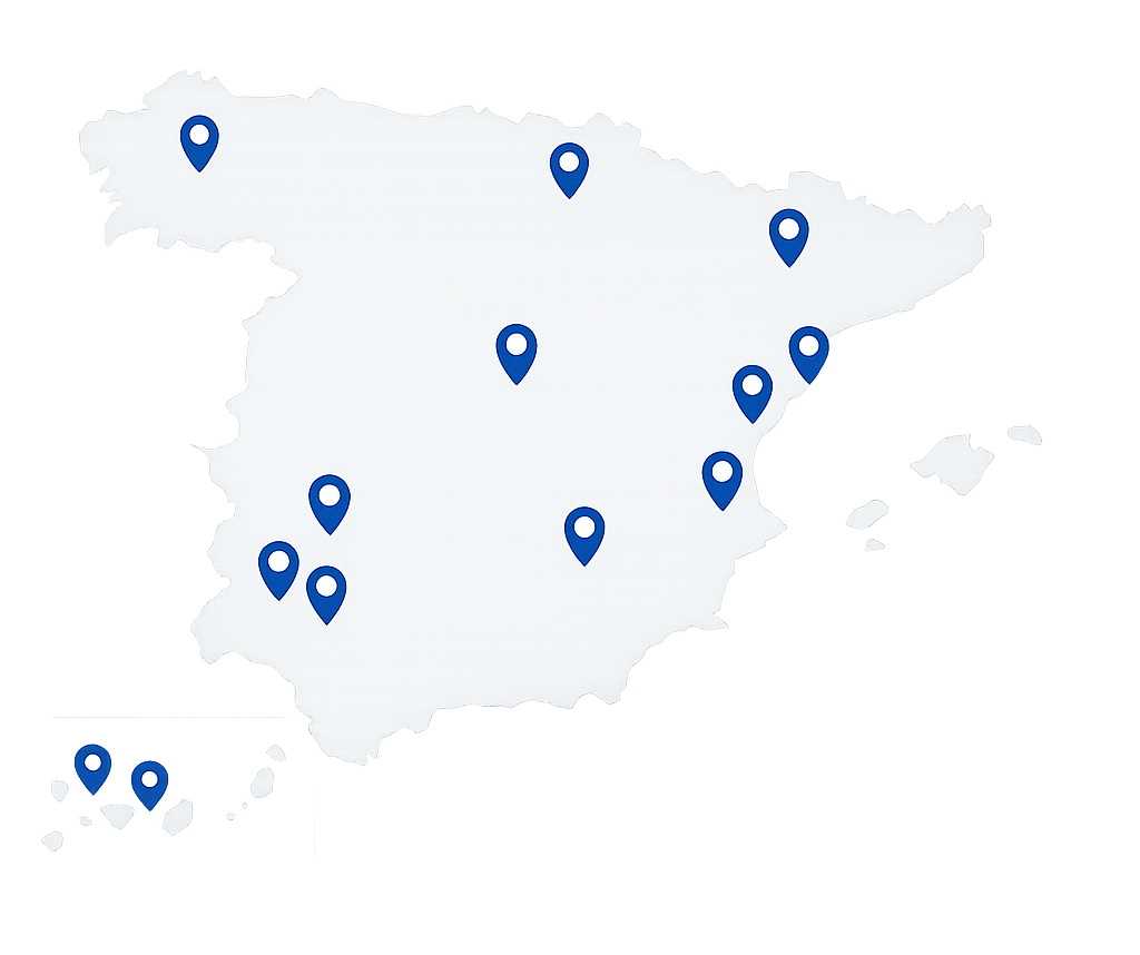 - Equipo distribuido por toda España: Península e Islas